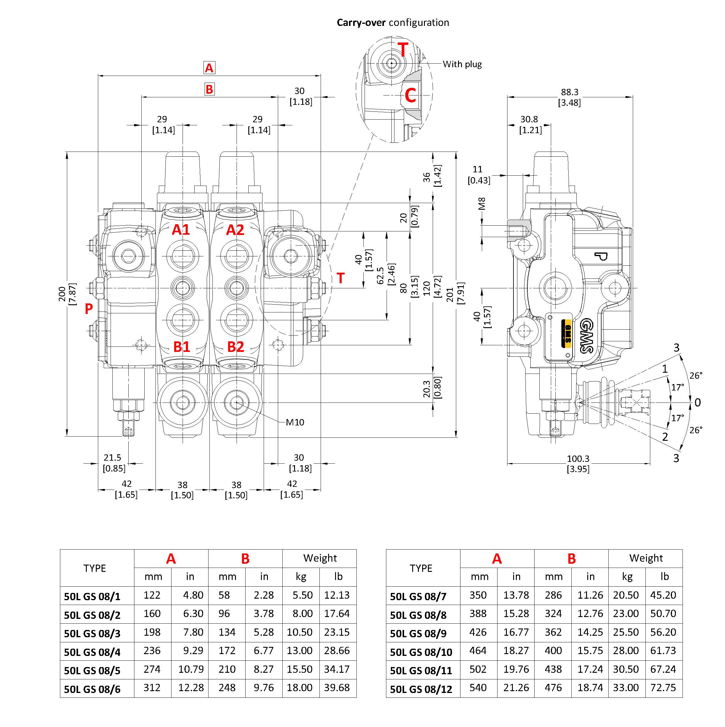 This 50L GS directional control valve group is commonly used for mini excavators, compact front loaders, cranes, backhoe loaders.