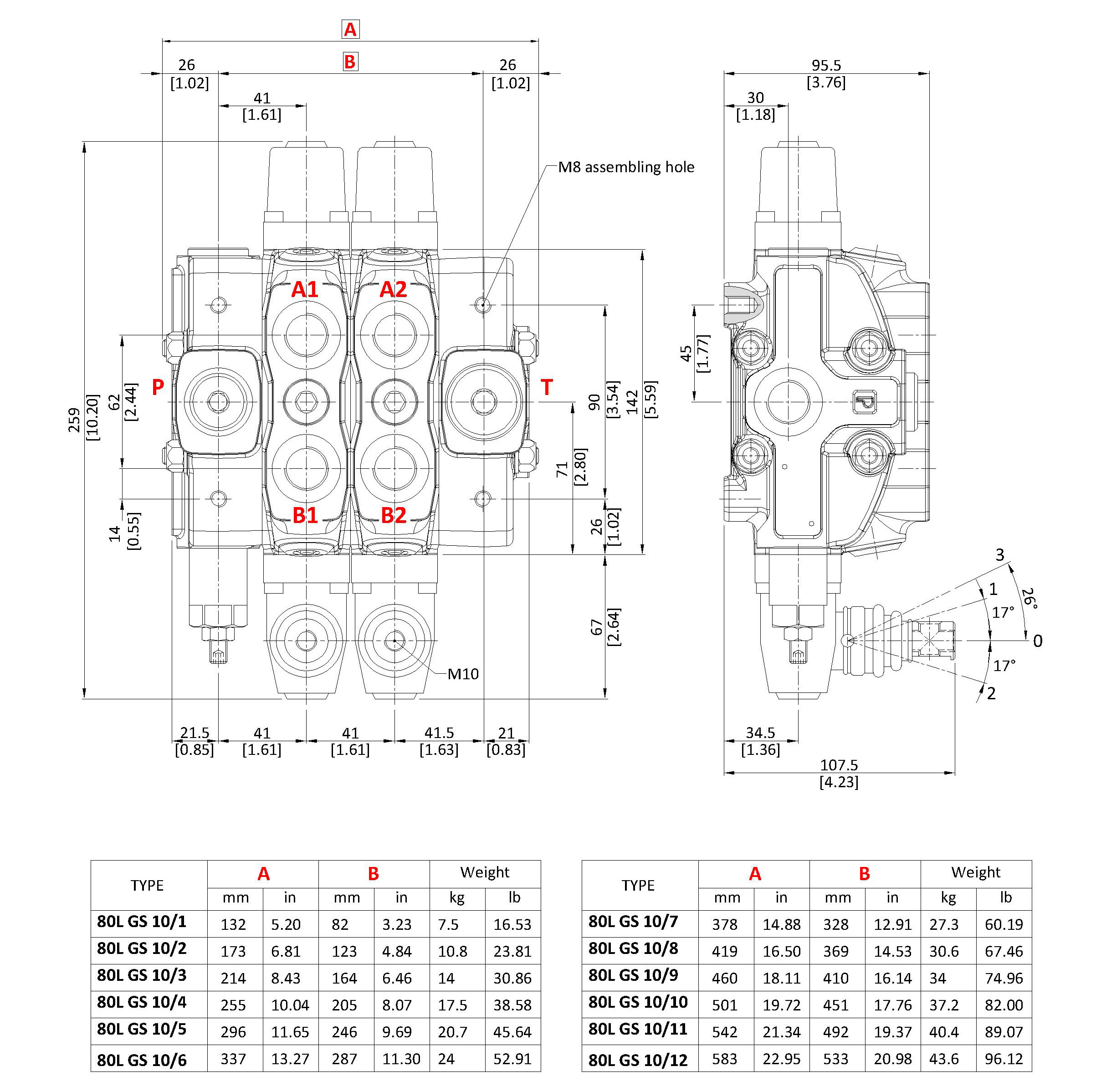 This 80L GS directional control valve group is commonly used for mini excavators, compact front loaders, cranes, backhoe loaders.